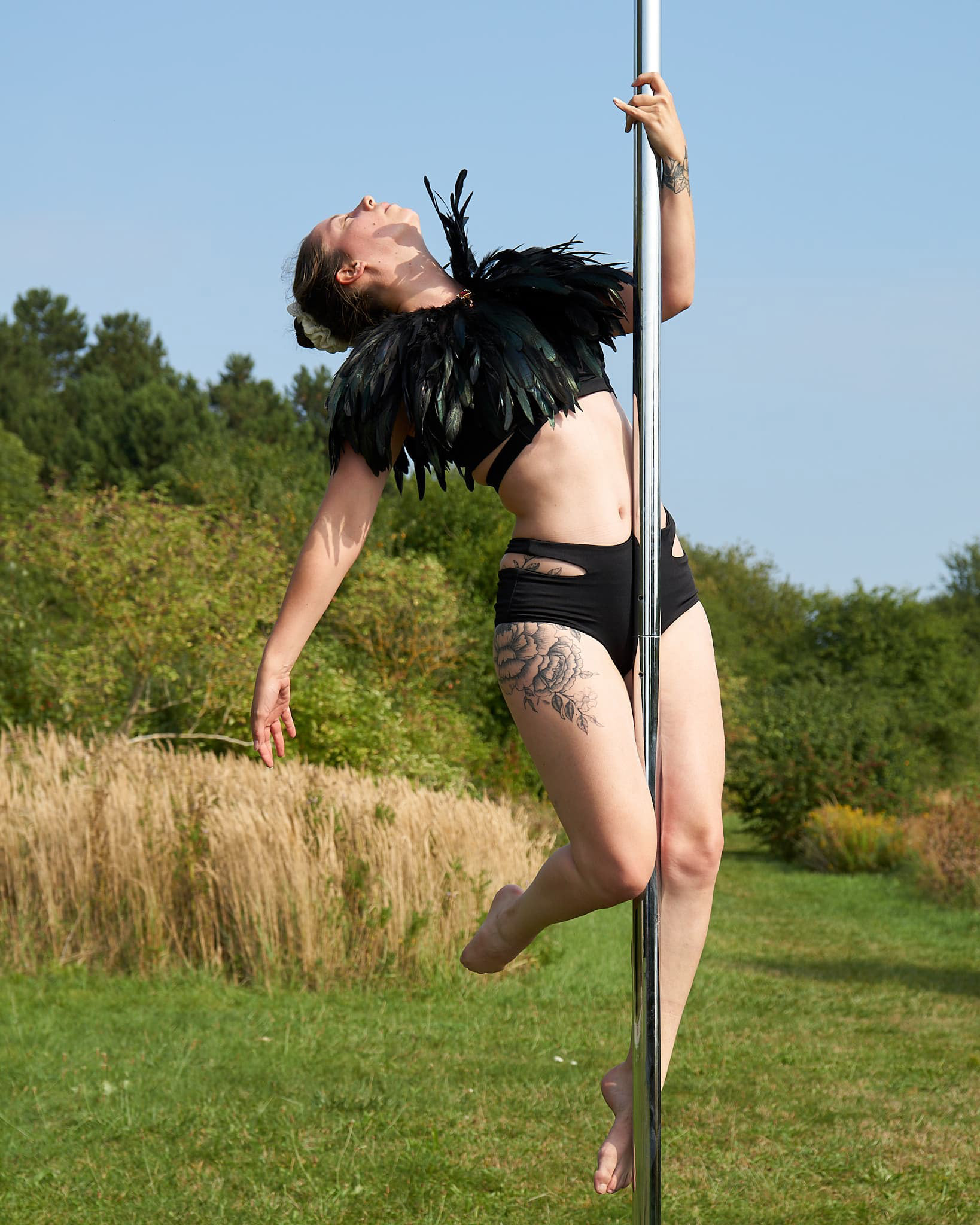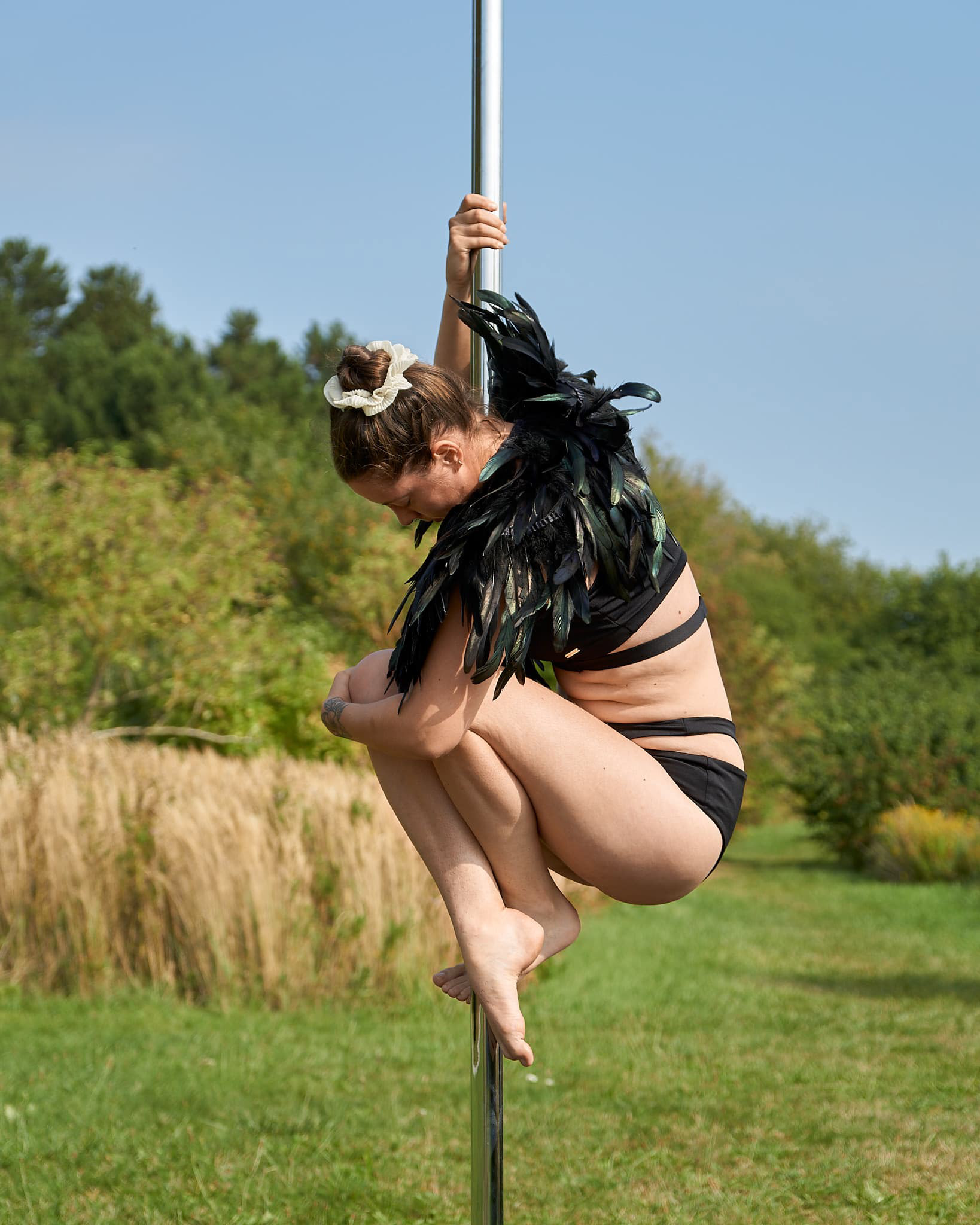 We brought a stage pole to the park for this fun photoshoot in the sun.